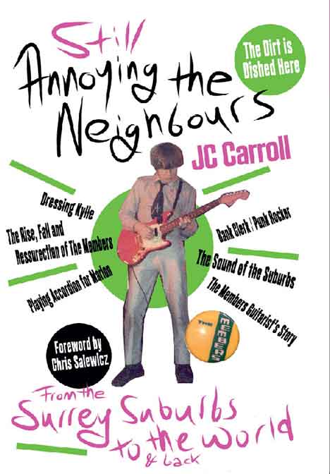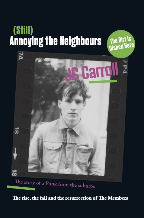 songwriter, musician, shopkeeper, Pantomine scriptwriter, film composer and Internet concert performer.From bank clerk to punk rocker, From bedsit in North London to rock and roll heaven in Hollywood, “(still) Annoying the Neighbours” takes its title from the lyrics of The Members anthem “The Sound of the Suburbs” and traces the journey of Members Songwriter and guitarist JC “Jean-marie” Carroll a boy with three girls names catapulted from suburban obscurity into the punk rock limelight and then flung back onto the music business scrap heap .. This is what JC writes in his book about his most famous song:-I felt a responsibility to play "The Sound of the Suburbs". That song could and would bring happiness to people that had grown up to it: it was the sound of their youth and bouncing around to it in a sweaty club for three to four minutes could and would take them back to a time where they were 17 years old with a full head of badly bleached hair, a 28-inch waist, and a fake leather jacket covered in pins and badges. That song was no longer just a song: it had become a time machine, an elixir of yoof, a magic pill that they could neck with a pint of lager to bring that youth club disco in a scout hut spinning back. It was not just a song, it was “The Sound of the Suburbs”. It was the aspirations and ambitions of thousands of bored provincial teenagers from a hundred satellite towns, bottled and aged in a cellophane wallet.
